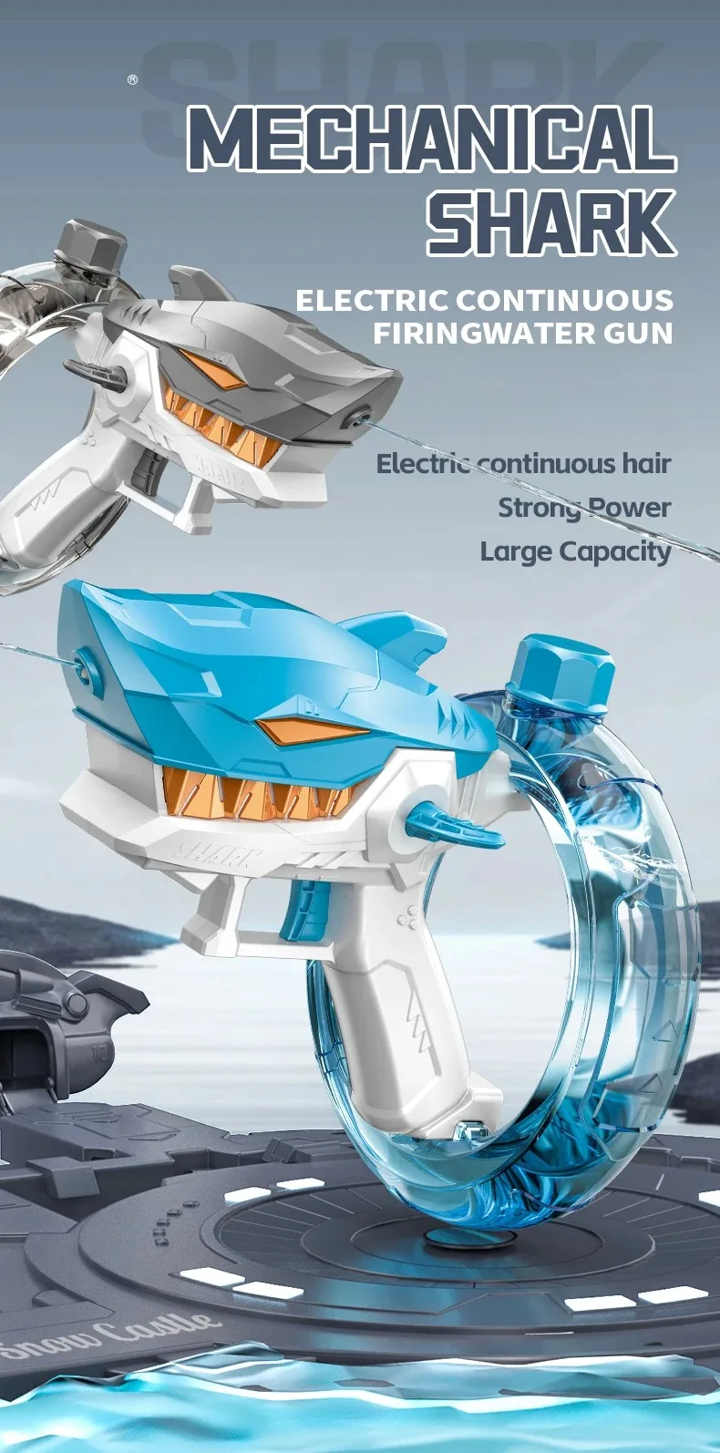 Electric high-pressure mechanical shark water gun: a children's toy for enjoying outdoor water fun time